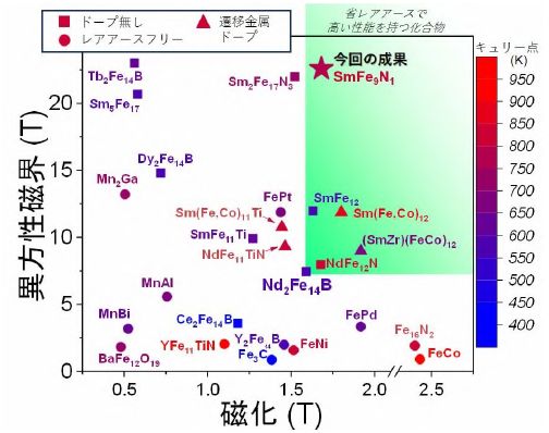 より高い飽和磁化、高いキュリー点を持つことを発見